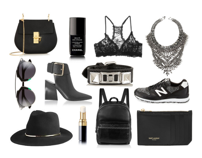 Chloe Bag // Sigerson Morrison Ankle Bootie // Janessa Leone Hat // Dior Sunglasses // Chanel Nailpolish // Proenza Schouler PS11 Bracelet // Chanel Lip Balm // Elizabeth & James Backpack // Lace Bra // Dylanlex Necklace // New Balance for Bergdorf Goodman // Saint Laurent Cardholder