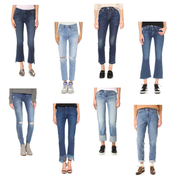I'm not the type to have stacks of denim for days in my closet. {Its mostly all black. duh} I have worn denim a time or two on the blog. {Looks can be seen here and here}. With fall shopping at the top of my to-do list I have no choice but to accept that my denim game needs to step it up a bit. Here are a few pairs I've got my eyes on....